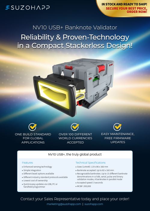 NV10 USB+: Reliability and Proven-Technology in a Compact Stackerless Design!